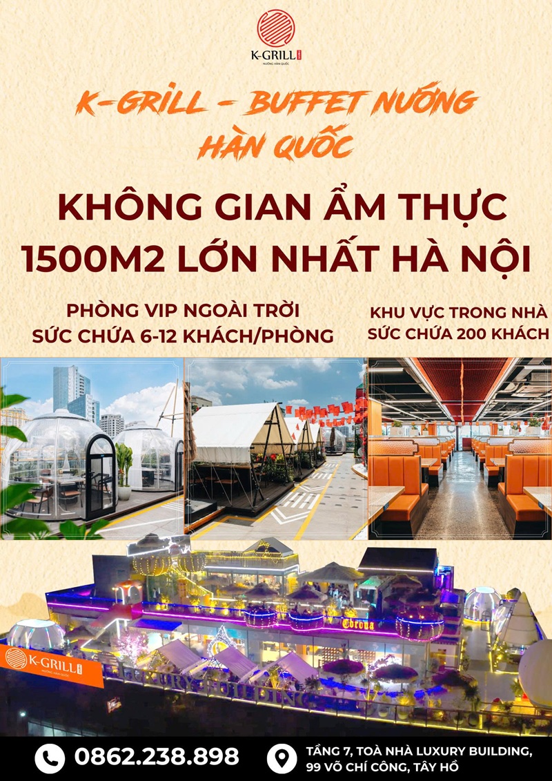 K-GRILL có không gian ẩm thực 1500m2 lớn nhất Hà Nội, với các không gian trải nghiệm ăn uống độc đáo bậc nhất.